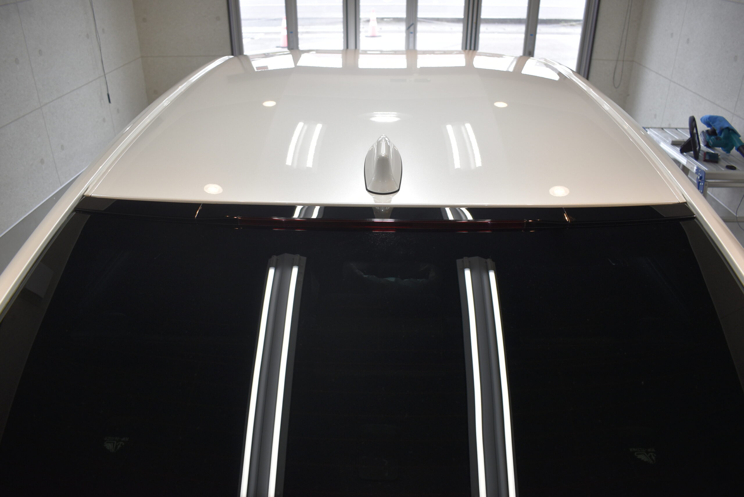 その後、紫外線軽減効果と、撥水効果のあるトップコート、オーバーコートを再塗布してボディをコーティング致します。
