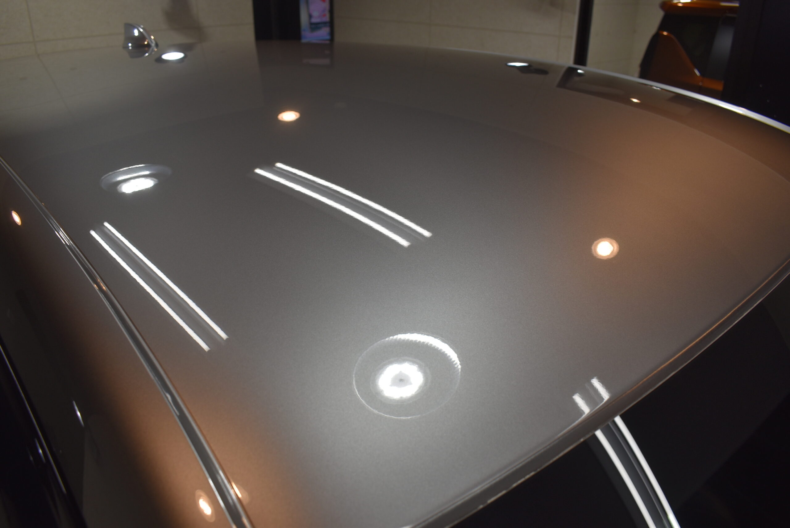 ガラス被膜の上に付いている、水垢・軽度の水シミ・洗車傷を除去致します。