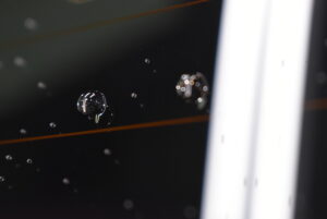 しっかりと下地処理を行いウロコ状になった水ジミや油膜を除去した上で、プロ用の撥水剤をたっぷり塗布していきます。