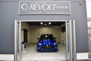 リボルトグループでは、ボディ表面はもちろん、樹脂パーツ、メッキパーツ、ドアを開けた部分までコーティング塗布していきます。