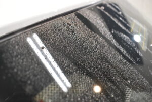 しっかりと下地処理を行いウロコ状になった水ジミや油膜を除去した上で、プロ用の撥水剤をたっぷり塗布していきます。