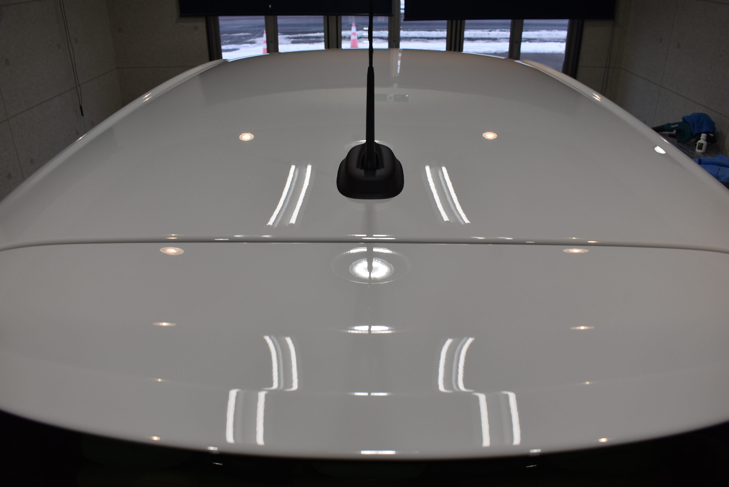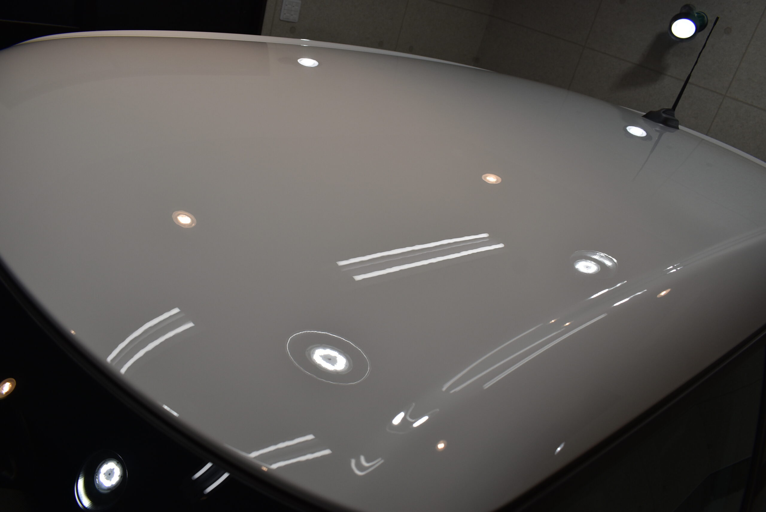 細かな傷や小さなシミを取り除く事で、塗装面の艶が増すと共にコーティングの食いつきを良くする効果があります。