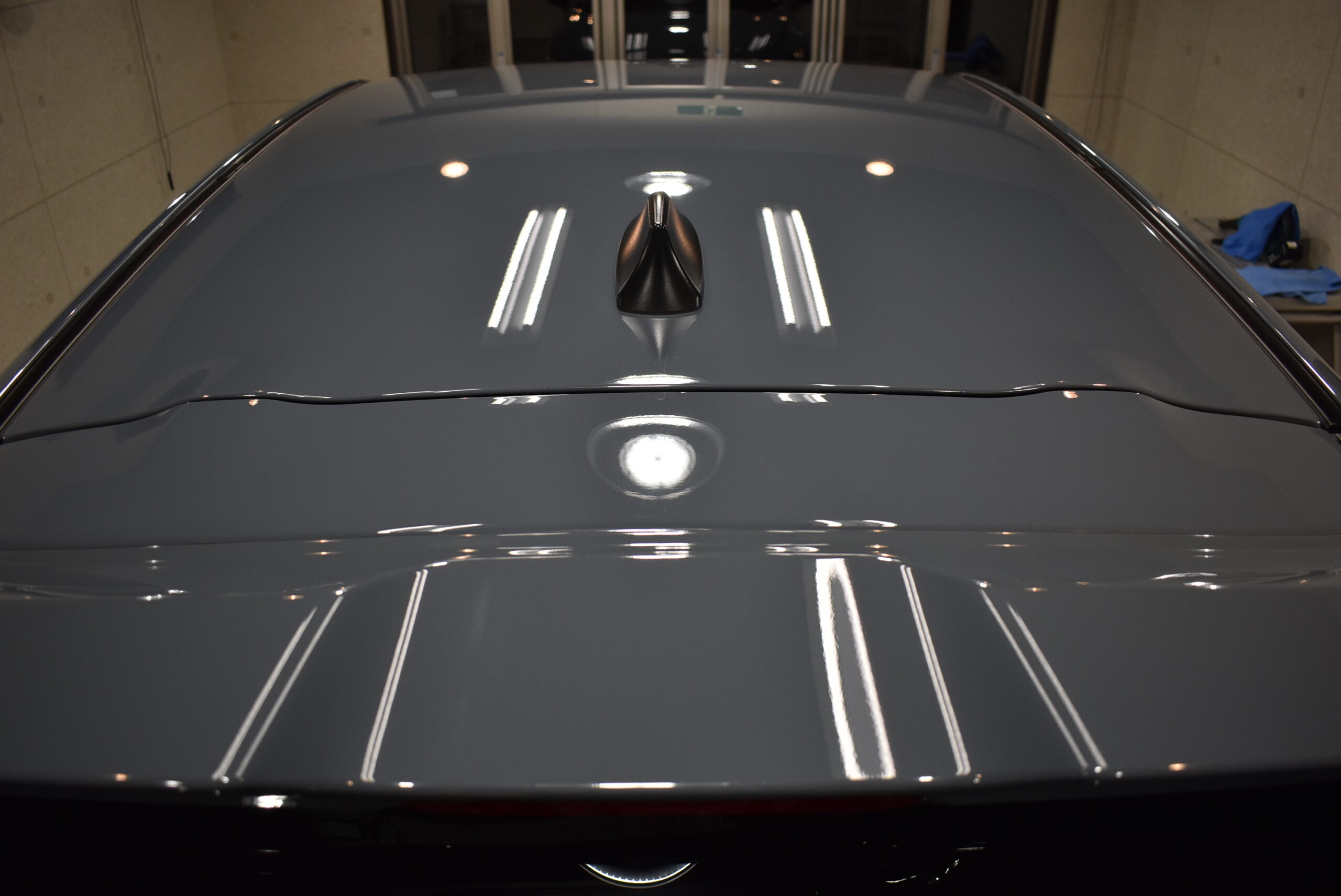 その後、紫外線軽減効果と、撥水効果のあるトップコート、オーバーコートを再塗布してボディをコーティング致します。